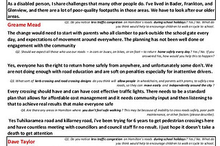 Hamilton WEST council election 2025, Living Streets questionnaire to candidates